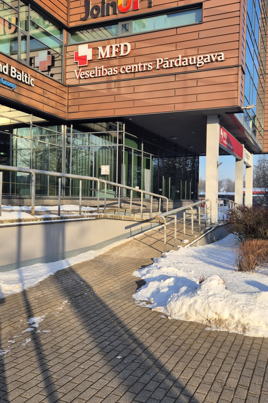 Pieejama lēzena uzbrauktuve līdz ēkas ieejai